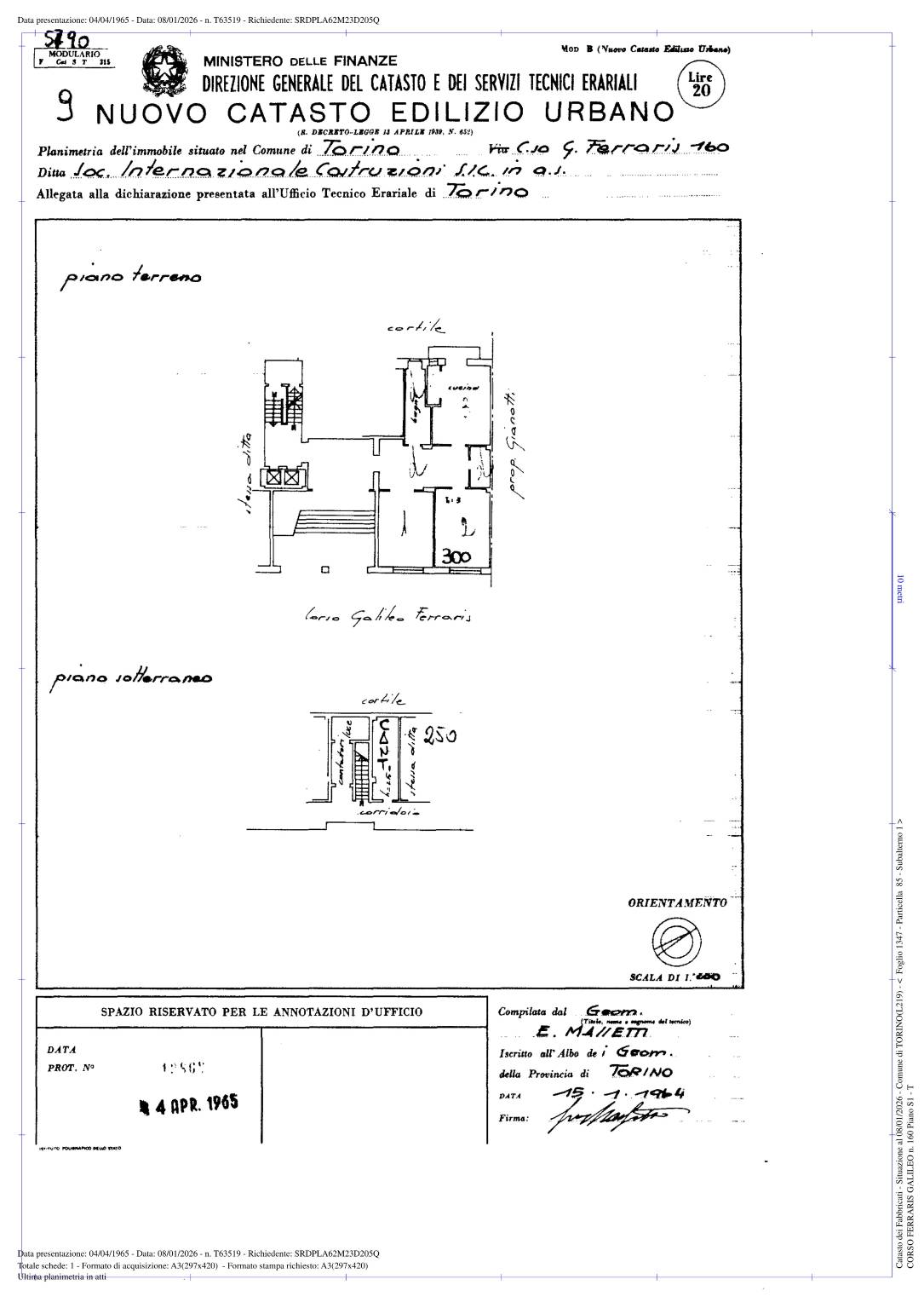 L'appartamento è attualmente censito come ufficio, con possibilità di trasformazione in residenziale prima dell'atto di vendita.